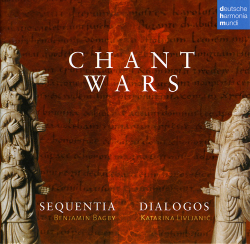 As developed by singer and musicologist Katarina Livljanic, the theme of Chant Wars is nothing less than the first known ‘globalization’ of European music. Specifically, the men of Sequentia/Dialogos have recorded music which illuminates the legendary 10th and 11th-century confrontation between the Frankish cantors of the Carolingian emperors (including their attempts to learn ‘historically-informed’ Roman singing styles from the wily, virtuoso cantors of the Papal court) and the European chant traditions the emperor sought to replace with these ‘new’ musical repertoires and vocal styles. The merging of two separate vocal ensembles makes it possible for today’s listeners to hear the diversity of chant styles of medieval Europe, at a time when chant traditions were competing for ascendancy in the vigorous young empire of Pepin, Charlemagne and their successors.