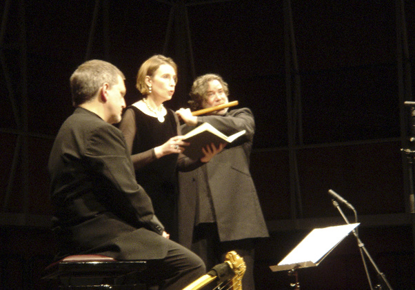 The instrumental music in this programme is reconstructed using instrumental structures and modal models (both German and French) of the period. In the pieces Der Ritter, Kievrefuel and Künec Artûs, we hear the instrumental sounds of bowed strings (fiddle), plucked strings (harp) and winds (flutes), well-known to minstrels of the late 12th century.